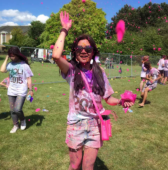 交流以中国人的谦逊和内敛,主动聊天确实是很难跨出的一步。一直在留学生的小圈子里学习和生活,不能融入本地主流群体。我刚到英国的时候,为了让自己尽快适应这里的生活,硬着头皮,周末去老师家里做客,让老师全家带我一起family talk。去当地幼儿园做义工,陪蓝眼睛的小萌娃们做游戏做手工,常常被他们笑我的发音。胡里节彩跑,跟一帮歪果仁被喷的五颜六色,东倒西歪,听他们聊天说最新的单曲和明星绯闻,完全插不上话。到后来,和越南来的twins小姐妹逛街,吃饭,磕磕绊绊的用英语聊天,一起过lady’s day。和马尔代夫舍友去欧洲旅行,带她感受雪,绞尽脑汁的找单词给她形容我家乡寒冷的冬天……